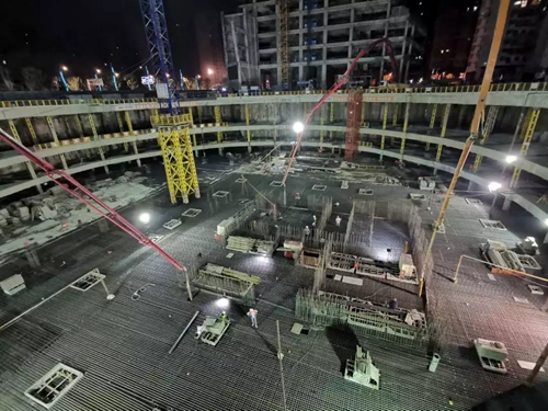 2019年5月5日凌晨一點,武漢建工總承包建設的武漢市軌道交通七號線一期三陽路風塔配套綜合開發(fā)項目二期工程開始了11000立方米大體積混凝土澆筑施工作業(yè),預計四天完工。