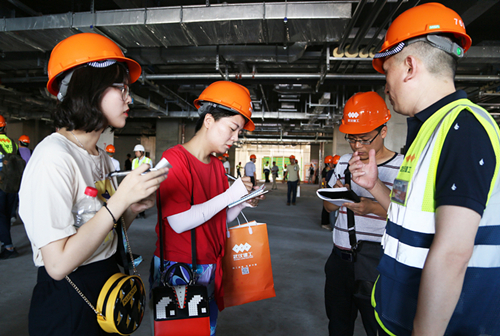 在觀摩會主會場,湖北省建管局副局長葉兵主持并通報2017年上半年全省安全生產(chǎn)形勢,武漢市城建委建管辦主任周才志致辭,亞洲醫(yī)院項目經(jīng)理交流發(fā)言,湖北省住建廳領(lǐng)導(dǎo)李斌作總結(jié)講話。亞洲醫(yī)院項目部經(jīng)理楊勤講到,武漢亞洲醫(yī)院項目是國內(nèi)唯一同時具備“魯班獎、LEED-HC金級認(rèn)證及JCI認(rèn)證”三大獎項和認(rèn)證追求的項目,建設(shè)完成后將成為國內(nèi)頂級,國際一流的綜合性醫(yī)療技術(shù)中心和綠色環(huán)保、人性溫馨的康復(fù)服務(wù)中心,項目部運(yùn)用新技術(shù)、新工藝、新材料對質(zhì)量進(jìn)行全程管控,項目全過程采用BIM技術(shù)輔助施工,配合天寶放線機(jī)器人及3D掃描儀等設(shè)備提高現(xiàn)場施工精度;在安全文明施工管理方面項目部致力革新觀念,以人為本,打造花園式溫馨工地,施工現(xiàn)場綠化全覆蓋,噴淋降塵系統(tǒng)、雨水回收系統(tǒng)等切實做到“四節(jié)一環(huán)?!钡囊?。